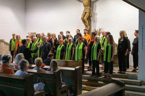 Jeder Chor gestaltete eine Hälfte des Konzertprogramms und dann fanden sich die insgesamt 40 Sängerinnen und Sänger noch zu zwei gemeinsamen Stücken zusammen.