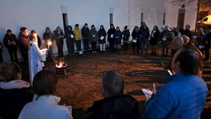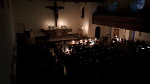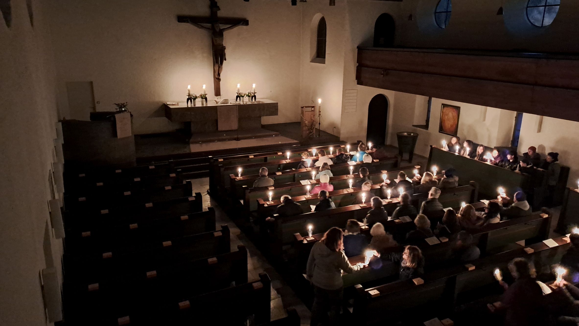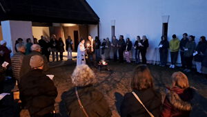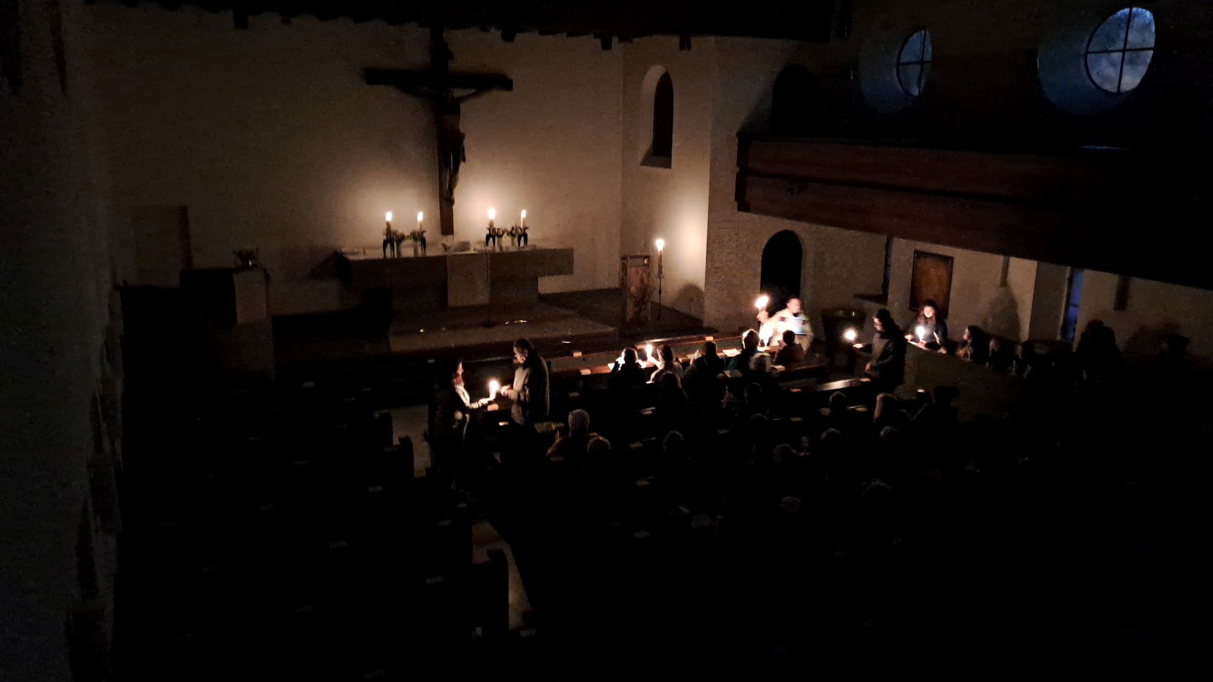 Die Jugend begrüßte uns vor der Kirche mit einer Feuerschale. In der Dunkelheit waren die müden Gesichter nicht ganz so deutlich zu erkennen. Für sie war es eine lange Nacht mit weniger bis gar kein Schlaf?!